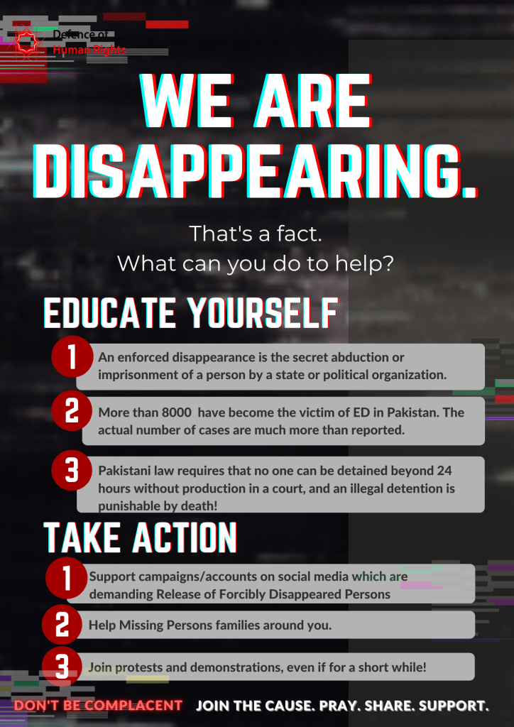 We hope that this campaign brings hope and benefit to all forcibly disappeared person’s families across Pakistan and conveys the whole truth to those in power.