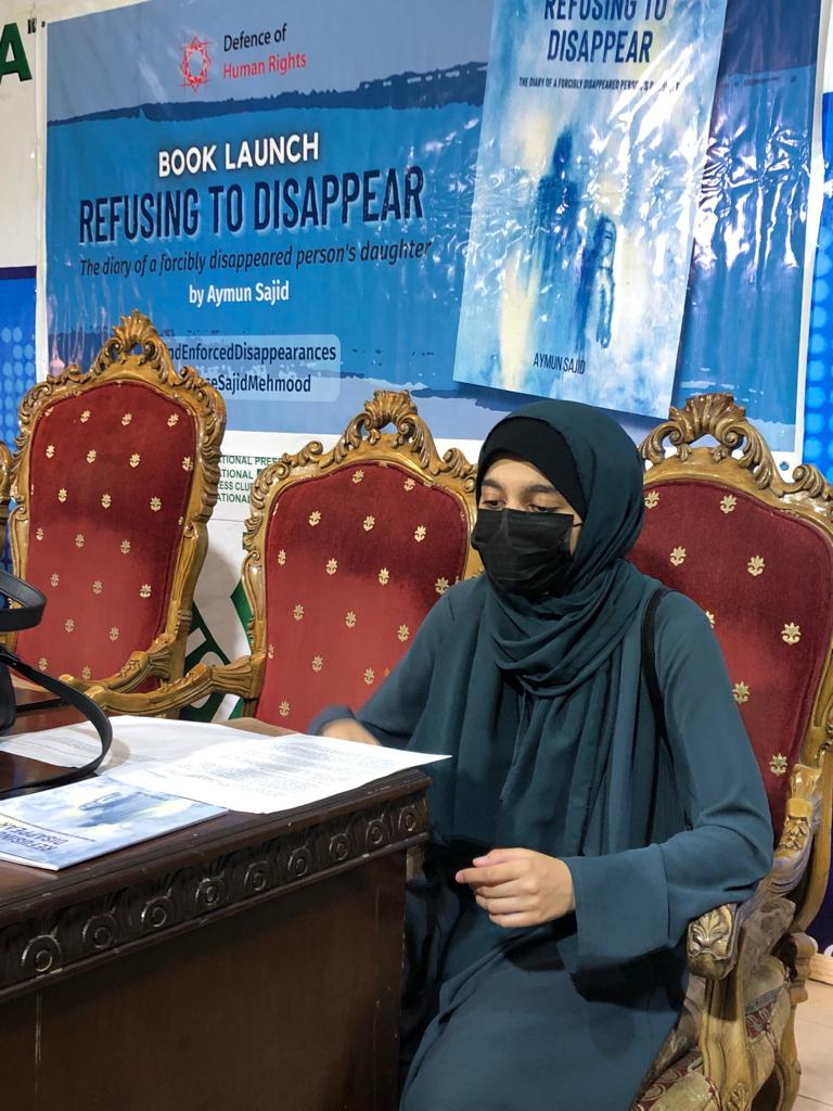 After Mrs Janjua, the author of Refusing to Disappear, Aymun Sajid, shared the reasons of why she wrote the diary and gave an insight into the daily struggles of forcibly disappeared person’s families. A passage from the book was also presented and read aloud.