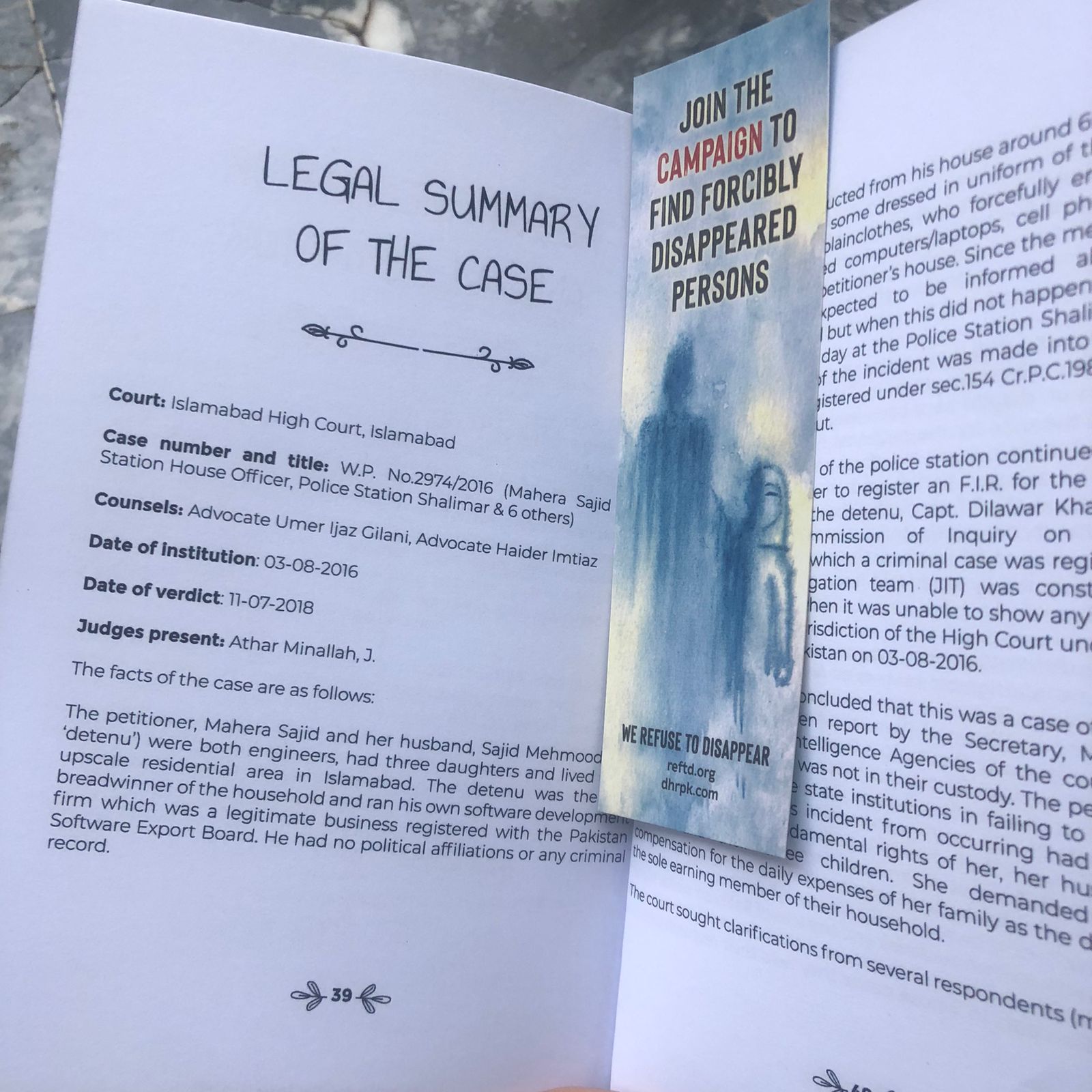 Fill out the details below to order the second edition of Refusing to Disappear with a special foreword by Amina Masood Janjua, Chairperson DHR, a detailed legal summary of the case, and more new content.
